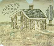 James Castle, "House Drawings," Mar. 4-May 4, 2000, at the Drawing Center, 35 Wooster St., New York, N.Y. 10013. Drawing is one of the roots of art. It's a way of seeing and thinking, a way of seeing yourself think. An intimate art about cosmic things, and a cosmic art about intimate things, it happens mostly -- but not always -- sensually, physically, from the fingertips. The nerve endings of the hand listen to the musings of the imagination, which marvels at the movements of the hand. The artist's face is often very near the drawing. In ways it's very primitive, very primary, a kind of universal language. Drawing makes old thought new and new thought accessible. Without it -- in whatever form it takes -- there might be no art. To James Castle, the deaf, mute, reputedly mentally handicapped and illiterate artist, who died in 1977 at the age of 77, drawing was all there was. It makes sense that Jay Tobler curated "House Drawings," the first exhibition of this relatively unknown "folk artist" (a term that sounds more pejorative and irrelevant every day). Tobler, who died of leukemia at 33, seven days before the opening, was as versed in "self-taught" art as he was in New York's high-powered art world (as the former director of Barbara Gladstone Gallery). An early proponent of UFO artist Ional Talpazon, Tobler included "outsiders" like Bill Traylor and Howard Finster alongside Whistler and Ryder in the reference book he edited for Phaidon Press, The American Art Book. I'm guessing that Tobler was attracted to Castle because he (like Talpazon) exhibits tendencies not usually associated with outsider artists. Castle did more than simply repeat the same gesture, theme, or tic -- a definition many apply to folk artists, who supposedly work without developing. Castle, who never learned to sign or speak, and who never ventured more than 150 miles from his birthplace in southwestern Idaho, made thousands of meticulously illustrated books and as many drawings. Some contain made-up hieroglyphic symbols organized into grids, others are pages of stamp-sized portraits drawn in herringbone patterns and organized like imaginary family photo albums. (A selection of Castle's books are currently on view at the American Institute of Graphic Arts, 164 Fifth Avenue, through May 12.) He worked on butcher paper, matchbook covers, cardboard and mail-order catalogs (his parents' home served as the local post office), and made pens from sharpened sticks, ink from soot and spit, and sometimes fashioned paper from chewed-up pulp. At the Drawing Room, you can see Castle draw a building from one side, then another; then he renders it from closer in, then crops the same scene differently. Other times, he might add a little color, sew string into the paper, cut an object out of cardboard, or draw from two perspective points simultaneously, as in an almost mystical rendition of a staircase. A town landscape is pictured in muted color, then he moves a little farther back and does it in black and white. Another work, reminiscent of the early American modernist Oscar Bluemner, features a herringbone-patterned house, a tree of stripes and a cloud of Xs. Castle's drawings can get muddy, but he always seems to be wondering, "What would this look like from here?" This is what brings him very close to our art world. Now, thanks to Tobler and Catherine de Zegher, director of the Drawing Center (who organized last month's stunning Sergei Eisenstein show), we can get closer to Castle's world. Initially, I was sorry the show was devoted only to those drawings having to do with home, but concentrating on one theme allows us to see Castle the artist, rather than the idiot savant or the outsider. His domestic interiors and tranquil outdoor scenes bring him closer to someone like Édouard Vuillard than to Howard Finster. Several drawings of a small town and one of the paneled side of a building bring to mind the deadpan Depression realism of Walker Evans, as well as George Ault's visionary precisionism. Castle was especially good at establishing complex stratas of space. In one drawing of a farmhouse, he positions himself just beyond the building, so that the porch is very close-up, then there's the yard, some trees, a stable, then another house, hills, then sky. By the time your eye reaches the back of the drawing, you've traveled an enormous metaphysical distance. In the indoor drawings, he might focus on a door seen from the side, just a molding, two plates on a cupboard, or the ceiling as seen from the floor. His pictures of beds and bedrooms can stand beside van Gogh's without losing much. One features an open door through which we catch a tantalizing glimpse of an old-fashioned wood-burning stove in the kitchen and a shaft of sunlight through a window. Everything is quiet, private and almost unknowable. Back inside the bedroom, the eye relishes a messy dresser top and Castle's own pictures hung crookedly on wallpapered walls. In another work, he moves about three feet to the left and redraws the scene, this time conjuring a more contained space. Finally, he goes around the side of the bed and draws it again. Castle's eye was like a camera's; he saw everything equally, and equally well. He used drawing to caress and examine everything in his sight. Castle's world is always cast in twilight -- you could call it dark, and even dour -- but his drawings also speak of a tremendous love of one's surroundings, and a passion for rendering them again and again. Drawing set Castle's senses free; looking at his art makes ours come alive as well.