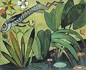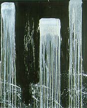 "Jumpin' Backflash" is a selection of works that were shown between 1966 and 1969 by 15 different artists in seven group exhibitions at the Hyde Park Art Center near the University of Chicago. The artists organized themselves into three groups, which they named "Hairy Who," "Nonplussed Some" and "False Image." The artists never called themselves "Imagists." Long after all the paintings were dry, writers and dealers created the Imagist movement. But since everyone did very well from Imagism, this never much mattered. The best-known Imagist artists are Roger Brown, Phil Hanson, Gladys Nilsson, Jim Nutt, Ed Paschke, Christina Ramberg, Suellen Rocca and Karl Wirsum. "Imagist" or not, the artists have much in common. They draw upon popular culture, comics especially, but make art from the imagery instead of just appropriating or mocking it. Exuberant and irreverent, they take a healthy interest in sex, but never dwell upon vulgarity to get attention. Everywhere in this work we see clear visual thinking, excellent draftsmanship and strong color skills. "Imagism" may be a fiction, but these are thoroughly honorable artists whose work still looks fresh -- and still is fun -- a generation after it was made. Pat Steir's Waterfalls Pat Steir had her first one-person show in Manhattan in 1964 and has exhibited ever since in museums and galleries all over the world. Her work is in more than 30 public collections. She is the subject of a book-length monograph. At the Rhona Hoffman Gallery here in Chicago, Steir showed waterfall paintings, Jan. 14-Feb. 12, 2000, dating from 1990 to 1993. The artist paints the canvas matte black, then touches a brush filled with white or other light-colored paint to it and lets the paint flow downward in long drips that mimic cascading water. She may also fling paint off a brush onto the canvas to suggest turbulence at the base of the waterfall. Steir has made waterfall paintings for many years and has completely mastered her effects. The paintings are mostly large -- in the range of ten feet tall by six feet wide. They would be less monumental on a smaller scale and might lose intensity if she increased their size. The artist knows how to dilute and apply light-colored paint so it drips down the canvas, without always running all the way to the bottom. She apparently does not size the canvas, so paint sinks in instead of standing on the surface. Impasto would distract. The simplicity and flat perspective in Steir's work connect it to Asian art, while her paint handling recalls Pollock and even Bacon. Her improbable marriage of two different traditions puts tremendous energy into her work. "A little bit of everything" "It is dangerous to go to heaven when you are too young. You do not understand it and I did not learn to work in Paris." Wyndham Lewis, the English artist and writer who lived in Paris from 1903 to 1909, wrote these words about himself. They could be the epitaph of Amadeo de Souza Cardoso, the avant-garde Portuguese draftsman and painter. Born in 1887, Souza Cardoso grew up in the Portuguese countryside, went to Paris in 1906 to study architecture, started painting the next year, returned home for good when war broke out in 1914, and perished in the influenza epidemic of 1918. Fifty-two paintings and drawings by Souza Cardoso were on exhibition at the Arts Club of Chicago until mid-March. The artist's first major show in the U.S., it was co-organized by the Corcoran Gallery of Art, Washington, DC, and the Portuguese Ministry of Culture, Lisbon. Souza Cardoso once called himself an "Impressionist, Cubist, Futurist, abstractionist, a little bit of everything." Young, handsome, and very gregarious, he seems to have met almost every artist who lived in Paris before the War -- Boccioni, Severini, Juan Gris, Max Jacob, the Delaunays, Modigliani and many others. He devoured enthusiasms and his work shows an absolute riot of influences -- Art Nouveau, Analytical Cubism, Futurism, Orphism, the Blau Reiter, Cezanne, the Diaghilev ballets, African sculpture, Beardsley, Gaugin and more. Souza Cardoso would be completely forgotten today if he had not been such a good draftsman and colorist. There are strong graphic elements at the center of his ink drawings. His paintings glow with color, which is said to derive from Portugal's landscape. But Souza Cardoso had no gift for composition and he did not know when to stop putting imagery into his work. So most of his art is derivative, chaotic and overstuffed. The artist made his two most original paintings -- Kitchen in the House at Manhufe and Corpus Christi Procession -- during the summer of 1913, when he fled the distractions of Montparnasse to work quietly in the house of his birth. The Falcons (1912) shows his draftsmanship at its best. Two Renaissance portraits There is so much great art in Europe that one overdoses while there and forgets how powerful individual works can be. We were reminded of this by two Renaissance portraits -- Donna Velata (Veiled Lady) (ca. 1526) by Raphael Sanzio and Portrait of a Man with Blue-Green Eyes (1540/45) by Titian Vecellio -- which were on exhibition at the Art Institute this winter. The Pitti Palace in Florence, which owns these recently restored paintings, lent them to the Art Institute. The Raphael has never been shown in the U.S. and the Titian only once. Raphael's Donna Velata, whose veil indicates that she is a married woman with children, has beautiful, aristocratic features, a gorgeous complexion, and a voluminous silk sleeve that's so alive it seems to sweep right out of the canvas. In Raphael's day, sleeves, "often expensively embroidered and usually detachable from their gowns or chemises, were considered precious objects" the Art Institute explains. The Donna Velata's sleeve is said to suggest "both opulence and, in abstract terms, the sitter's politely hidden but complex psychology." Severely dressed, Titian's Man with Blue-Green Eyes stands by a wall, one hand on his h