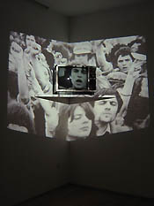 M: At the Wexner Center for the Arts, where it was shown in 1994, the installation occupied seven rooms in a circular space, one for each "chapter." Chapter 6 was about "the critics." In my files, I have hours and hours of taped interviews with people like Pierre Restany, Lucy Lippard, Benjamin Buchloh and many others, tapes that I then edited and from which I kept short fragments that concerned the structure of the work. In the room on the critics, you could hear portions of those tapes interrelated with open visuals in video and photo form. It would take hours to describe You need to see the tapes.