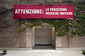 Muntadas shows me his preparatory notes for the Spanish pavilion in Venice. These include the overall floor plan, plans for an information kiosk in the center and the design for a sticker that states, "WARNING: perception requires involvement," which will appear blown up to enormous size on the façade of the pavilion, as well as on the different elements (furniture, flat screens, etc.) that constitute the new work On Translation: I Giardini at the biennale.