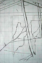 On one end of the studio was an entire sound system surrounded by a mound of CDs (Havekost is also a DJ). On the walls hung the works in progress, each accompanied by a group of source photographs, images that he took or found, ran through the computer, subtly manipulated and printed out. His process is slow and methodical. He does all the legwork for a painting before he actually paints it -- so the process is almost preordained, as if paint-by-numbers.