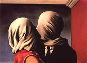 But what is the meaning of Havekost's images? They are all human subjects. There is that man on the telephone. Who on earth is he talking to? Then there are the two portraits of individuals with cloth pulled over their heads. They could be the separated lovers that are kissing each other through the same cloth in Rene Magritte's Les Amants II (1928) -- Magritte's chilling reference to his mother's suicide by drowning.