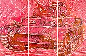 In a German accent undiminished by nearly two decades in Los Angeles, Herman cheerfully admits that he knows nothing about printmaking or pottery. "The weird thing is that they are both media that I always despised," he says. "They are two things I approach like a beginner so I have all the freedom in the world." Herman is represented by Susanne Vielmetter Los Angeles Projects, where he had an exhibition of new woodcuts last June. Herman, 52, gained praise in the early 1980s for giant wood block prints made after celebrated paintings by Vincent van Gogh or Jacques-Louis David. "I used art icons that were loaded with meaning," he says. By 1985, Herman had earned the New Talent Award from the L.A. County Museum of Art along with a small show at the museum. He soon began showing his often enormous paintings in the vast rooms of Ace Gallery in L.A. and New York. The woodcuts led to a series of monumental paintings of a blocky and balconied modern apartment building, a mundane subject Herman rendered hundreds of times in monotone grays or luscious shades of pistachio, chartreuse or pink, leading critics to compare his efforts to Claude Monet's renditions of the Rouen Cathedral. "I started making paintings that are more about themselves, dealing with their medium as an issue. I'm not interested in big ideas and critical concepts in painting," Herman says boldly. "What is the critical concept in a Matisse interior? A painting can still be intelligent without a critical concept." Herman was born in 1947 to a French father and German mother in the Franco-German town of Saarbruecken. (French when he was born, it became German by plebiscite in 1959.) He speaks both languages fluently. Yet, with his bright blue eyes, fair coloring and buzz-cut hair, he admits, "I feel more German, maybe because of the way I look." His father was in a concentration camp during the war and died of cancer when his son was ten. His mother, who sent him to a French school, died when he was 19. In the late '60s, Herman studied political science before taking up art at age 25, when he enrolled in the Akademie der Kunst in Karlsruhe. A German DAAD grant brought Herman, his first wife Susan Wood and daughter, Jessica, to San Francisco in 1976. After his marriage dissolved, Herman decided L.A. was the livelier town for contemporary art. "It had this enormous feeling of a beginning," he recalls. "There was such an enthusiasm." In 1998 he left Ace Gallery after a financial dispute with owner Doug Chrismas. The decision provided him with an opportunity to rethink the direction of his work and he turned as a novice to work in clay. Although he has been a professor in the prestigious UCLA art department since 1984, where he now heads the painting and drawing department, he opted to take lessons from one of his graduate students, Lisa Yu. She told him his efforts were "off-center but still in control -- just like you." A self-described "binge-worker," Herman spent ten hours a day throwing pots and drawing pictures on them of women engaged in obvious sexual acts in the style of Japanese Shunga. "The students looked at me like I was some dirty old man in the corner," he says, laughing but not at all embarrassed. Soon, he had completed some 500 pots. "They are funny, not really that erotic," he says. The freedom found working in clay opened the way to woodblock prints, which he had not attempted for ten years. "It's good to take a break every once in a while," he says. "The pots, for me, were sort of a vacation." Large sheets of plywood are stacked in his backyard. Determinedly low-tech, Herman first paints a design on both sides of the plywood panels, and then hand chisels the indentations that carry the various inks. The floor of his studio is littered with dozens of his initial attempts at printing castles, tulips and brides. "I didn't think of subject matter but of learning what was possible," he says. The new works depart from the woodblock prints he did in the early 1980s, which were duo-chromatic -- black and one other color. In 1999 Herman visited Japan, where he saw modern woodblock prints called Shin-Hanga and was inspired to increase the number of colors so that each print seemingly vibrates with brilliant tropical and forestal hues. "I have the freedom of approaching something without a preconceived notion of technique," he explains. "Printmakers tear their hair out when they see them because the ink is rolled on too thick. But I don't have a roller." Picking a rounded piece of wood off of the floor, Herman says, "I just rub them with this." The pièce de résistance is a German tank printed in hot pink, orange and green, executed on three panels to measure 8 by 15 feet. "It is closer to Warhol, more photographic than my earlier work," he says. "Right now, the paintings are jealous of the prints because they work," he says. "The prints have such a confidence."