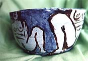 Roger Herman lives life large. His dark green house with the bright blue door towers above the bungalows of his Elysian Park neighborhood. It is one of the first residences designed and built by Los Angeles architect Frederick Fisher. Two huge dogs -- a bullmastiff and a Great Dane -- greet a wary visitor. Inside, the white walls are papered with nine-foot-tall woodblock prints of tanks, ranch houses and vases of flowers. In an alcove, glass cabinets contain dozens of Herman's rough ceramic bowls illustrated with his frankly erotic designs.
