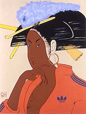 "I discovered that they knew nothing of the history, only the images," she told us, whereupon she educated her interlocutors like a 21st-century Dubois -- and wound up executing a revolutionary style in painting: Shinto Hip-hop.
