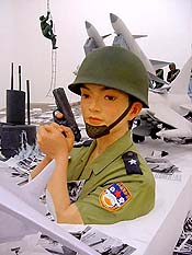 Here were Cindy Sherman's deconstructed West (and East) Coast women at Metro Pictures. There were wispy balloon penii by Sue Williams at 303. A dozen other West 20s openings were also nibbled in the moveable feast of arties. And the greatest showman in art found himself alone in SoHo on a Saturday night: a 7:45 p.m. cab ride to the old Friedrich Petzel space on lower Wooster Street found Jeffrey Deitch standing alone before a miraculous new wall-sized photo of Vanessa Beecroft's wedding party. "North of Portofino," Deitch told us. We were alone before one of the most remarkable images I have ever seen. "This is her first real piece, Charlie," Jeffrey remarked. "Every project up to now has been about Vanessa exploring the fake. From now on, her subject is reality." Jeffrey, we believe you. Here is the wedding party, uniformly garbed in transparent white. Deitch himself is resplendent. Vanessa veils her angelic face in pale gauze, offering herself to the Navy Seal inamorato who inspired her series of military pieces, in front of a bas-relief depicting Saint Sebastian. Vanessa's Old World grandparents dominate the foreground, bracketed by two beautiful teenage girls. "The one on the right is Vanessa's half-sister," Deitch continued, "Vanessa is creating a calendar piece with photos of her sister for each month. From now on, it's all about the real." Beecroft could become the real Jeff Koons if she keeps heading in this promising direction. Deitch had his three SoHo spaces open. Laurie Simmons and Peter Wheelwright's gorgeous dollhouse was debuting in his project space. Yet we strolled empty cobblestones to his Grand Street emporium. "Everyone's at Cindy Sherman," we reminded him. Yet Deitch looked satisfied: admiring Wang Du's monumental terra-cotta tableau of a Chinese military parade were two dynamos, supercollectors Mera and Donald Rubell. "Wang Du was considered the top realist sculptor in the Beijing Academy. Tianamen pushed him over the edge," Jeffrey told us. "His new satiric work was denounced and confiscated. Through the intervention of French Prime Minister Jacques Chirac, he was able to get a visa to Paris, where he lives today." A lithe, tall, exuberant Wang embraced us in full army camouflage, clutching a Rolling Rock, as martial music blasted around us. Then the happy few danced around the Grand Guignol of one-party ChiCom tyranny. Fret not for a crowdless Deitch Projects complex -- he's reportedly readying a 29th Street Chelsea space, one city block long, to open next spring. Will he keep his other spaces, including a huge new Williamsburg private gallery, open, as well? "Every time I drive by an empty space," Deitch comments, "I want to open a gallery there." To paraphrase P.T. Barnum, there's a Deitch show born every minute. Vanessa Beecroft, "VBGDW," Nov. 11-Dec. 12, 2000, at Deitch Projects, 26 Wooster Street, New York, N.Y. 10013. Laurie Simmons & Peter Wheelwright, "Kaleidoscope House," Nov. 11-Dec. 2, 2000 and Wang Du, "Defile," Nov. 11-Dec. 23, 2000, at Deitch Projects, 76 Grand Street, New York, N.Y. 10013.