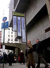 At 6:45 p.m., collectors Mera and Don Rubell stood at the front of the line for the Whitney Biennial, with a queue snaking around towards Park Avenue. The long line replenished itself all night long.