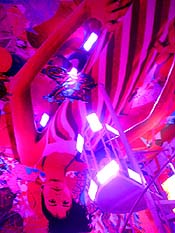 Particularly elegant is the fourth floor, which takes on the air of the Winter Palace in St. Petersburg. Artist Josh Biel stared lovingly at the 14-foot-high woman in Assume Vivid Astro Focus' psychedelic shanty, and told us, "That's my girlfriend" (she modeled for the piece).