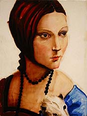 Lastly, a tip of the hat to the best, and smallest, piece in the show, Elizabeth Peyton's pastiche of Leonardo's Lady with Ermine.