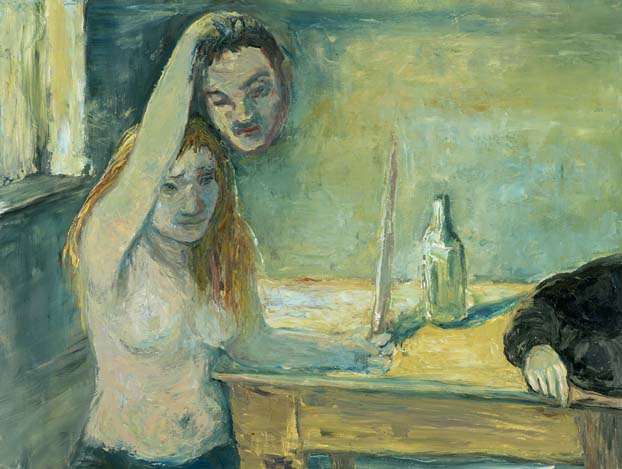 Rita AckermannThe Book Burners II 2003 oil on board 18 x 24 inchesCourtesy the artist and Andrea Rosen Gallery, New York © Rita Ackermann