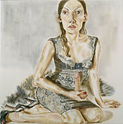Her high-profile relationships with art-world figures such as artist Julian Schnabel and Phillips auctioneer Simon de Pury have earned her a dubious reputation as a socialite. Yet she paints herself in unflattering postures, dressed in self-mocking garb such as a kinky French maid's uniform or an oversized NYC T-shirt. After having played the role of the swan on the social scene and modeling rare, beautiful clothes, her paintings expose an unexpected, unglamorous, intimate relationship with her body.