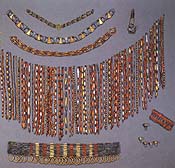 It's archaeology -- specifically Sumerian of ca. 2600 B.C.-- the "royal" treasures of Ur from the University of Pennsylvania's Museum found in the 1920s in tombs on the western bank of the Euphrates River in what is now southern Iraq. C. Leonard Woolley, the archaeologist who found the treasures in one tomb out of over 600 hundred containing the remains of some 1,800 souls, was so overwhelmed with his find and so concerned that the world press might learn about it that he cabled his Philadelphia colleagues on Jan. 4, 1928: TUMULUM SAXIS EXSTRUCTUM LATERICIA ARCATUM INTEGRUM INVENI REGINAE SHUBAD VESTE GEMMATA CORONIS FLORIBUS BELLUJSQUE INTEXTIS DECORAE MONILIBUS POCULIS AURI SUMPTUOSAE WOOLLEY. Or, for those whose Latin is rusty: "I found the intact tomb, stone built, and vaulted over with bricks of queen Shubad [later known as Puabi] adorned with a dress in which gems, flower crowns and animal figures are woven. Tomb magnificent with jewels and golden cups." The dig, a joint effort by the Philadelphia institution and the British Museum, and paid for wholly by the former, started in 1922 and fizzled out in 1934 when the Depression cut off further funding. The discoveries of masses of objects and jewelry in gold, electrum, lapis lazuli, including sensational lyres, crowns, necklaces, vessels, weapons and statuettes -- all over 3,500 years old -- became worldwide news for years and rivaled the "King Tut" find in splendor and mystery. People were especially captivated by why Woolley labeled the chambers surrounding the one where Queen Puabi had been buried "the death pit." More than 70 attendants and courtiers had been sacrificed to accompany her and other "royals" into the afterlife. The exhibition is truly dazzling at the Morgan. The curator in charge, Sidney Babcock, sweated the details on it and was able to veto what had been planned, a jumble of pyramidal showcases. All the pieces have been placed in clear, beautifully lit vitrines in the grand, high-ceilinged gallery just off the entrance. Instantly you can get a sweeping feeling of the goodies. I'll bet you step back in amazement and clap your hand to your chest as I did when I entered the gallery. Sadly, the catalogue is, in general, a failure. The color photographs could have been far better (think of the shining images in the "Tut" catalogue). Thankfully, the black and white excavation photos are marvelous. The illustrations of the clay impressions of cylinder seals are shown in an ugly blueish tint and do damage to this art form, which was of singular importance in early Sumerian art. They should have been crisp black and white as they are on the walls of the show. The text of the catalogue is turgid and flat even for archaeological writing. The curator has been able to get rid of some of the more awkward installations thath were planned to travel with the show (which goes next to the Oriental Institute in Chicago, Oct.-Jan., and the Detroit Institute of Art, February-May, 2001). One was the frightful head mannikin used to show the extraordinary gold headdress of Queen Puabi. In the show the mount fades from view and you can see the gold in all its glory. Woolley made a black and white shot of this crown when he found it and had no idea what it was going to look like when the hundreds of pieces were put together. In this wonderful room at the Morgan there are, until September, I swear, five of the finest, most resplendent and magical works of art in all of America. * The Golden Goat. It's frequently known as the "Ram caught in a thicket" from the passage in Genesis 22:13. As anyone can see, however, the goat's stance is a sexual one. This gorgeous image, as the catalogue strains to put it, "encapsulates in a highly symbolic manner the fundamental Sumerian concerns with the fecundity of the plant world and the fertility of the animal domain." I guess we know what that means. Because of a lucky roll of the ancient dice, two goats in gold, lapis, shell and bitumen were found and in a way that facilitated reconstruction of both. One was face up in the dirt and badly crushed. Another, almost identical, was found on its side, also crunched. Only because of having two distinct sides was Woolley able to make an accurate reconstruction from the hundreds of fragments of gold and shell. For the show, the University Museum has corrected some of Woolley's small mistakes in its splendid new reconstruction. * The necklaces, skirt and girdle worn by Queen Puabi. Woolley and his brilliant wife picked the fragments out of the dirt and made a reconstruction of what the "royal" dress might have looked like. * The elegant and sensuous tumbler made out a combination of gold and silver called electrum. Queen Puabi must have cherished this one. * The gold ostrich egg. The creature was much sought after in the hunt in Mesopotamian times and the eggs may have been used as part of meals served to gods. * The great lyre. This stunner of gold, silver and lapis lazuli was dug out of the "death pit." It was resting on the heads of three bodies, which were loaded with fantastic jewelry. These women, Woolley conjectured, may have been the singers during the ceremonies of burial. The decorative panel on the sound box just below the stalwart bull's head boasts, in the heroic lad hugging a pair of bulls, one of the earliest nudes in all of art. In the third scene down where the bull is playing the lyre to the amusement of the bear, note the fox shaking a systrum and with his left paw reading an ancient text. The finest pieces in this impressive array can't be seen -- they are the lapis cylinder seals so wondrously carved that when rolled over clay the scenes look monumental. One, according to curator Babcock, must be a portrait of Queen Puabi, for she sits on a chair more richly decorated than anyone else, her features are more pronounced and she is the only person being fanned and "flattered." Every queen needs fanning and flattering, so maybe he's right. "Treasu