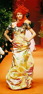 Evening Dress 1996 chiné-printed silk taffeta and lace, embroidered with sequins, pastes and beads 27 1/2 x 24 3/8 x 66 7/8 inches |
