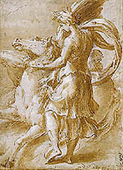As with the punks of the 1970s, Mannerism appeared incredibly ugly in its time. For centuries, Mannerists were branded as "affected" or "repulsive," dismissed as mere links between the Renaissance and the baroque, or witheringly referred to as the "post-peak generation." Ouch. The Frick's modest but mighty exhibition includes a room full of prints and seven muddy paintings that will stir but not shake you. Parmigianino's masterpiece, Madonna of the Long Neck - an orchestrated over-the-top encyclopedia of disproportion, contortion, satiny grandeur, and lurid color -- doesn't leave Florence's Uffizi Gallery. No matter, Parmigianino was a spectacular draftsman (over 1,000 of his drawings survive). Like Raphael, he died at 37. Yet in his short life Parmigianino effectively changed the course of art history by concocting a new artistic sensibility. That he did this mainly through drawing is all the more thrilling.