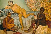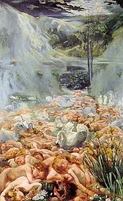 | "1900: Art at the Crossroads," May 19-Sept. 10, 2000, at the Guggenheim Museum, 1071 Fifth Avenue, New York, N.Y. 10128. Robert Rosenblum, the promiscuous mind behind the incessantly illuminating "1900: Art at the Crossroads," is a true imp of the perverse. For more than 40 years, and to the horror of many, this art historian-cum-rebel angel has reshuffled the deck of art history, undermined orthodoxy, and twisted the clean linear progression of modernism. As much as anyone, Rosenblum helped initiate ways of looking at art that are not exactly antiformal or antichronological but bend and blend these modes into new patterns. He likes to hold up very different things from different times or places and say, "What do these things have in common?" In 1961, he linked Abstract Expressionism to 19th-century landscape painting, rather than seeing it as the logical outcome of Les Demoiselles d'Avignon. In 1975, he literally wrote the book on Modern Painting and the Northern Romantic Tradition, connecting artists like Caspar David Friedrich and Augustus Vincent Tack to Mark Rothko and Clyfford Still. By now, nearly every local museum has mounted a revisionist or antichronological survey. But where other countercanonical exhibitions seek to establish new canons, Rosenblum's credo is "only subvert!" He knows we're a little embarrassed about modernism's messy ancestry; that we've deleted the humiliating bits. But that doesn't stop him from looking in every closet. No mere exercise in historical relativism, his archaeological approach is a reminder that history is teeming with styles and subjects, that art comes from all manner of esthetic DNA, and that we have no way of knowing what will look good a hundred years from now. In his own roguish way, Rosenblum -- one of the Charles Darwins of revisionism -- elbows the competition, plays a game of "revival of the fittest," and seems to say, "You've seen the rest, now see the best." This show may be his crowning achievement. Realizing the art historian's fantasy of organizing an exhibition as a walk-in slide lecture, Rosenblum dreams a delirious dream; he takes us to a moment in time just before the modernist canon was wheeled into place and many of the artists here were swept under the carpet of time -- a period when heterogeneity ruled and history was in the balance. He asks if any of this might be of use today. Things get thrilling when the answer turns to yes before our eyes. Using the 1900 "Exposition Universelle" -- the Paris fair that brought together thousands of artworks, including 78 of the 240 pieces on view here -- as a jumping-off point, Rosenblum (assisted by Vivien Greene) rounds up a motley panoply of 170 artists from 26 countries. All the works, installed in pithy bay-by-bay bits according to 12 themes, date from the years immediately before and after 1900. Rosenblum mixes unknowns and outcasts, the avant-garde and the academic, the talented and the talentless; reactionaries are pitted against prodigies. The 20-year-old Picasso stares out of his self-portrait with extraterrestrial eyes; the young Mondrian paints himself as a Coptic mystic in the manner of an Egyptian fayum; Paula Modersohn-Becker's heavenly, barely-there self-portrait is a study in delicate Symbolist haziness melting into something Expressionistic. Nascent Fauvists and Futurists Henri Matisse and Giacomo Balla muscle in on the fading Pre-Raphaelite Sir Edward Burne-Jones; soon-to-be Expressionists and abstractionists Emil Nolde and Vasily Kandinsky battle it out with academics like Paul Chabas -- whose Joyous Frolics, a scene of semiclothed women splashing about in water, reminds us that old styles sometimes die slow, painful deaths -- and Emile Bernard, represented by The Three Races, a painting of three women in a brothel that might be an antecedent to Picasso's whorehouse or an allusion to the Three Graces but seems more fixed in odious Orientalism. A late, roughly hewn Redon still life, with its complicated background, dominates its iffy next-door neighbor, a Vuillard interior. You might be surprised when Maurice de Vlaminck's vulgar, heavy-handed portrait, The Bar, holds its own against two strong Picassos, including The Absinthe Drinker, a painting that still oozes empathy and horror and suggests -- contrary to popular opinion -- that even if he had died in 1905, we might still recognize Picasso's greatness. Elsewhere, an overwrought Giovanni Boldini painting of a Bernini bust in an empty room suggests Boldini was trying to turn himself into Whistler by way of Corinth. The six works by Munch project a genius so staggering and eerie it's possible you will declare him the 1900 World Champion; the three paintings each by Klimt and Eakins put them both in contention for runner-up. You can start anywhere and be in the thick of things. You might go to the top ring, park yourself in front of Eakins's astonishingly solitary portrait of Cardinal Sebastiano Martinelli, a cleric in the body of a sensuous man, stare into its disturbing brown abyss, and hope a New York museum mounts an Eakins exhibition soon. A bay away is John Singer Sargent's breathtaking Mrs. Carl Meyer and Her Children. Its luxurious grays, pinks and satiny silvers stand in stark contrast to the seductive Rupert Everett eyes of the young son and make you wonder what hearts this little boy went on to break. In small doses, Sargent is a superstar. Nearby is Whistler's portrait of George W. Vanderbilt, whose lithesome posture is pure Elizabeth Peyton. If you want to get a feel for Rosenblum's kinky side and the reason people sometimes brand his taste as kitschy, go into the large gallery just off the first ramp. Installed salon-style, on hideous burgundy walls, are paintings that museums like the Guggenheim were founded to fight against. Here, among the academics, is one of the biggest screwball paintings of the 19th century: Léon Fréderic's freakish, pedophiliac, over-the-top triptych, The Stream. In it we s