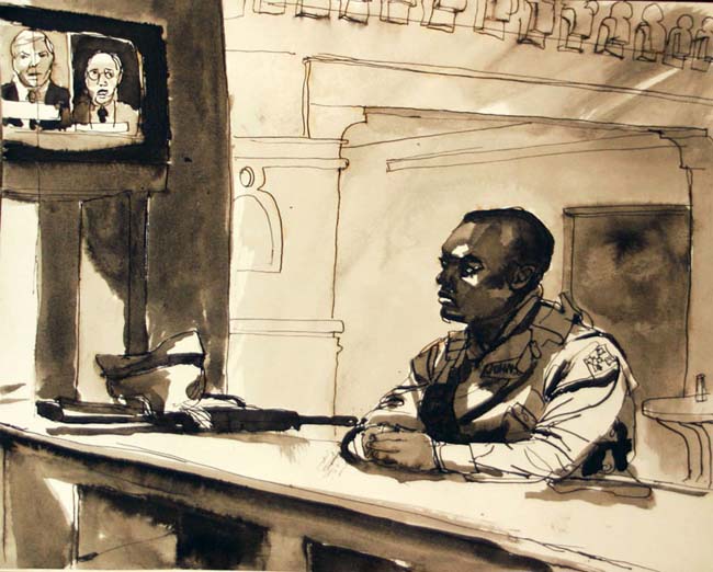 Soldier watching TV, Saddam's palace, Tikrit