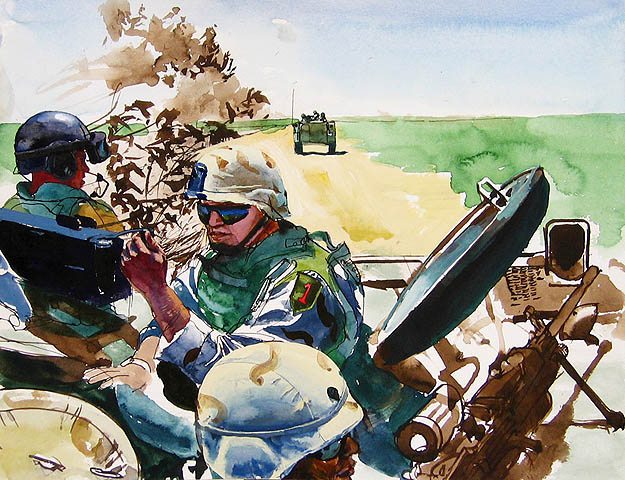 On patrol, Pfc. Jason Gayer and Sgt. Jason Theis