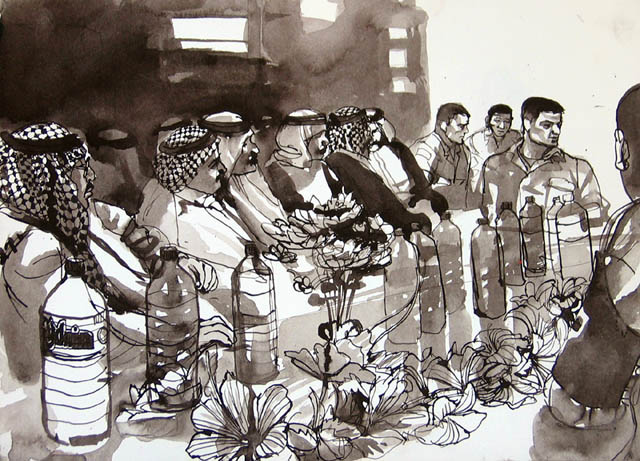 Lt. Col. Bulimore and the Sheiks of Buritz Lt. Col. Bulimore, commander of 1-6, meets with the sheiks of Buritz to discuss money for local projects. The sheiks were always interested in my drawings and usually asked for them as gifts.