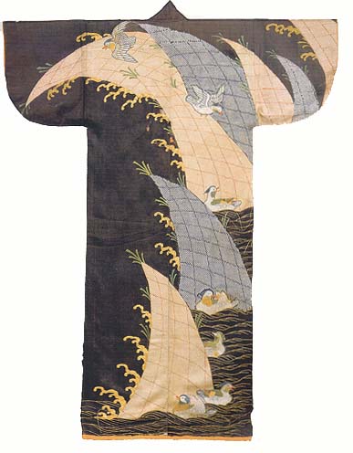 Kosode with waves and mandarin ducks