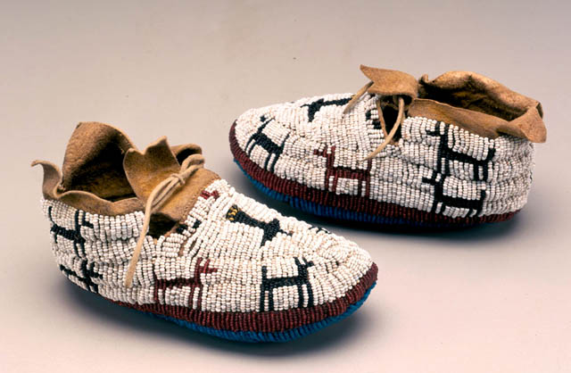 Artist unknown Cheyenne Baby moccasins ca. 1830 photo by Dirk Bakker hide, glass beads sinew, pigment, 13 x 7 x 6 cm each Charles and Valerie Diker Collection of American Indian Art