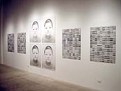 One of the most poignant works of art I've seen in awhile is Will Children Have Children? by Yuki Kimura. A selection of 81 slides is projected on to a wall. The scenes feature pairs of people who resemble each other. The models have the same haircut and posture, but different outfits. At first glance they appear to be the same person, but slowly the viewer discovers that Yuki has tricked the viewer into racial profiling. Photographs were taken of three sets of real brothers and sisters plus friends resembling the pairs -- eight people in all taking turns posing as siblings. One model in each photograph sports a white t-shirts that reads, "How many sets of real brothers and sisters do you reckon there are? And, anyway, we were born because our parents had sex!"