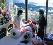 Miwa Yanagi examines old age and women's role in society in a series of three digital C-prints titled "My Grandmothers." These large-scale digital C-prints on aluminum, beautifully colored staged scenarios that look like the promotional stills for a magical-realism movie, are truly sights to see. In Yanagi's fantasy elderly women rule the world instead of men. In My Grandmothers, a well-dressed but grotesque-looking old woman (a role played by a young woman) stands in defiance on top of a sepulcher. She seems to have defeated death and a couple of bad marriages.
