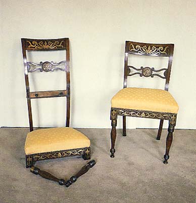 Two from a set of four Regency dining chairs with detachable seats and legsca. 1810mahogany, brasseach 33 x 19 1/4 x 15 in.