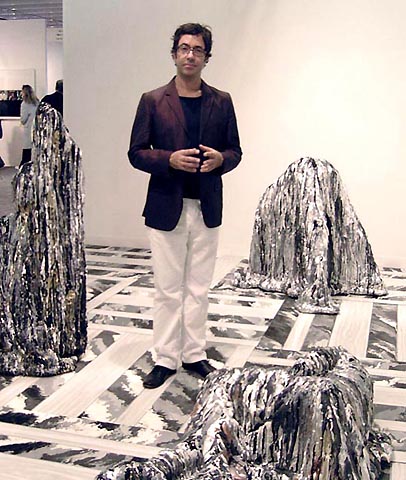 Artist Robert Melee in his installation at the Andrew Kreps Gallery booth