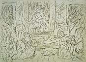 Three major U.S. museums are showing this group of paintings and works on paper -- the J. Paul Getty Museum, Los Angeles County Museum of Art and Metropolitan Museum. In addition, the tony New York gallery Mitchell-Innes & Nash is exhibiting around 50 recent figure studies and views of Kings Cross Station and Pentonville Road in his first U.S. gallery show since 1990. Kossoff, 73, is a member of the School of London, a group of loosely representational painters that includes Frank Auerbach, R.B. Kitaj and the late Francis Bacon. Kossoff represented Britain at the 1995 Venice Biennale and was the subject of a critically acclaimed retrospective at the Tate Gallery in 1996. He is celebrated for a body of work that could not look more different than Poussin's warm, idealized Baroque-era pictures. Since the mid-1950s, the subject matter of his paintings largely has been the relentless regularity of life in London. Known for his dour palette and thick impasto surfaces, Kossoff makes even his most intimate portraits of friends and family appear melancholy. London Times critic Waldemar Januszczak once wrote that Kossoff's art "provides so much unrestricted access to such massive amounts of spiritual discomfort that you marvel at its starkness." Although Kossoff first painted from a Poussin at London's National Gallery of Art some 20 years ago, his work in the U.S. exhibitions grew out of his reaction to a Poussin survey at the Royal Academy of Arts in 1995. Kossoff obtained permission to enter the Royal Academy galleries at 6:30 each morning, before public admission, bringing with him a drawing board, paper and materials. "It was physically quite demanding," he said. He stood for hours drawing from Poussin's pictures of mythological scenes, like The Triumph of Pan, or religious subjects, such as the Holy Family on the Steps. After two months he decided, "I'm not really getting closer to the paintings. I wonder if I could be more direct." So he began to draw with an etching needle directly onto the waxed copper and zinc plates. Explaining this decision, he says, "You've got no chance to change your mind with etching, while drawing is endlessly restating. Plus, with etching, you can't really see what you are doing very clearly, it's all intuition." Another couple months passed, and Kossoff had a body of work that his primary dealer, Peter Goulds of L.A. Louver Gallery in Venice, found so compelling that he invited LACMA's senior curator of prints and drawings, Victor Carlson, to see it. "Frankly, I was blown away," Carlson said, who arranged the exhibition of 40 drawings and etchings. When Getty Museum director John Walsh saw Kossoff's work, he was similarly intrigued. "Kossoff talks about the difference between knowing and experiencing," Walsh said. "That's what our visitors need, to experience the work, not to read more wall labels on art history." Walsh invited Kossoff to continue his Poussin work using Landscape with a Calm, a painting the Getty had bought in 1997. Kossoff, who regretted not drawing more from the landscapes during the Poussin exhibition, agreed. But Kossoff didn't want to go to Los Angeles. Fortuitously, the Getty lent the painting to the National Gallery in London, and Kossoff was able to inspect it there. Initially Kossoff was distressed to find that the Getty's painting lived up to its title. "It was awfully peaceful," he said with a sigh. For the most part, he'd been working from Poussin's figurative portrayals of revelry, reverence or mayhem. The Getty's picture of a serene lake reflecting a castle and mountains stymied him. He turned to another Poussin hanging in the same room of the National Gallery, Landscape with a Man Killed by a Snake. Eventually, he says, the tension between the two paintings, which both depicted the same lake, inspired him to action. "All I can say is that the greater the anxiety to make something happen, the more likely it is going to happen," he said laughing. While visiting the Getty last January, Kossoff sat on an ottoman in the gallery amid his own vigorously rendered etchings and drawings and the two scintillating Poussin landscapes that inspired them. Running his hand through his gray hair, his blue eyes appraised the landscapes. He said, I just planned to get as close as possible to the paintings, through drawing. I feel I'm experiencing the paintings in a down-to-earth way that makes (them) real for me. They keep my own drawing on the move." As it turns out, Kossoff's practice of making transcriptions from earlier paintings began at age 9, when he saw Rembrandt van Rijn's A Woman Bathing in a Stream and decided to teach himself to draw from it. It was only the beginning of his education. At 17, he took his first life drawing class; after military service in the late '40s, he studied in London at St. Martin's School of Art but considers his breakthrough to have been his studies with David Bomberg at Borough Polytechnic. The older painter looked at his young student and said, "Oh, so you want to be a painter. Well, the first 20 years are the worst." Kossoff laughs at this memory and says, "If I could see him now, I'd say, it's the first 50 years that are the worst." Kossoff time and again returns to art history, drawing from Tintoretto, Hals, Cézanne, Goya and Rubens. Yet, he considers those studies "absolutely separate" from his better known paintings of his neighborhood around Willesden Green or his studies of nude models. "Any influence," he said, "is completely subliminal." In part, it's the process that attracts him. "I don't know why," he said. "The capacity to know is what the painter hasn't got. He works in order to know. But when the work is actually happening, he still doesn't know." When pressed, though, Kossoff will admit that his interpretations of the past are about the continuing education of the painter. "I used to see painting as some mysterious process. I no longer see it that way. I feel the gestures have to be gestures 