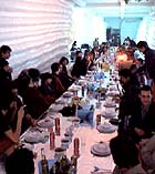| Mavericks and money A lot can happen in a year's time. Witness, for example, the rise of bad-boy painter Damian Loeb, much envied for his seemingly effortless ascension to art-world superstardom, despite becoming something of a critical punching bag. Hot off the heels of his successful show at Jay Jopling/White Cube in London, Loeb has returned exactly one year later to Mary Boone gallery for his second solo exhibition. Back in 1999, his surrealistic, postmodernist Photo Realist paintings were all pre-sold for $15,000 each. This time around, the five new works have found buyers at a whopping $30,000 a piece. Loeb's five paintings, all done in 1999 in oil on heavy-weave linen in a seamless, brushstroke-free style, imply a continuous narrative thread involving an imaginary meeting between a young man and a nubile young Asian woman (an ex-girlfriend, perhaps?). In one picture we see the girl in a cheerleading uniform at some track-and-field event. Another work, titled Fish Sticks, shows her naked in a kitchen while our young man -- he looks like a grad student -- stands peering into a refrigerator. Still another shows her in a bright red dress at a roadside motel, leaning on an automobile beneath a neon sign. As one might expect in our callow age, she winds up as road-kill in the final work, Stop (Anytime), a victim of god knows what, her fashionably dressed lower body shown on the ground underneath a fence, with her poor dog equally dead on the pavement off the main road. Loeb's not a linear storyteller. Rather, he dangles his modifiers and is cryptically ambiguous. I need my space Imagine an architectural wonder of the 21st century -- urbane and utopian, part Bauhaus, part Jetsons. Buildings like a dream, prefabricated and alabaster, contrasting with prettily landscaped public spaces. Such a world exists in "Architecture and Memory," a group show of 10 contemporary artists that just opened at Lawrence Rubin Greenberg Van Doren on Fifth Avenue and 57th Street. British art star Julian Opie (little seen over here, but much copied by Sarah Morris and an influence on the architectural photographs of Rita McBride) contributes Modern Towers 1 and 3, a pair of sculptural twin buildings painted in geometric grids of black on white installed in front of a classic angled black geometric wall painting. Torbjorn Vejvi's box-sized reductivist structure made of simple foam core and cardboard is painted with street sign symbols for a boy and a dog. It rests on top of a pedestal, and viewers can peer into what appears to be a long interior hallway inside and let their imaginations roam. Miltos Manetas exhibits a set of digital color prints that depict his version of medieval topography, improvised from a computer gladiator game called Hexan. Dan Walsh's pastel colored paintings are a paring down of the ABCs of geometric abstraction, a nice contrast to the happy exploding cells of Peter Halley. A new name to watch is that of 29-year-old Julie Mehretu, who recently relocated to our fair town from Texas and who was discovered in the Exit Art show called "The Stroke." Her large untitled square painting here is an over-the-top nod to public planning -- an aerial web of buildings and public spaces drawn out in black blueprint line, with delineated color bars representing airports and the freedom of travel from place to place. The utopian ideal may be as elusive as the Holy Grail, yet, as this show indicates, it's always an enticing and worthwhile pursuit. That's entertainment The meltdown menace of Y2K has mostly been a non-event. Art-world activities have returned to normal, evidenced by curators from P.S.1 and the Museum of Modern Art, who were spotted making their final studio visits this week to determine which artists will be in their biennial sized exhibition "Greater New York," opening in Queens in February. Specifically, Jan. 3 found MoMA director Glenn Lowry and P.S.1 founder Alana Heiss touring the site of the now-notorious art-event known as "Quiet," located on lower Broadway and funded by freewheeling net millionaire Josh Harris. Part Malcolm McLaren, part P.T. Barnum, Harris is the man behind Pseudo.com, which provides streaming-video entertainment, or internet TV. He wisely hooked up with rising art dealer and curator Leo Koenig to present a happening -- arguably the first avant-garde art event of the 21st century -- that has found itself in the news for its countercultural vibe, sexual hijinks and controversial shooting gallery installed by agent provocateur Alfredo Martinez. Launched just before Xmas, "Quiet" was billed as part art show, part commune, with militaristic overtones that were distinctly paranoid (or was that parody?). The jig was up once the show's nondescript storefront was marked with a new pink neon sign of a showgirl, part of a storefront peepshow of scantily clad models produced by fashion designer Maya Hanson (who is known for boudoir style garments). Thus on New Year's Day, among "Quiet's" visitors were representatives of New York's Bravest and New York's Finest. The long hall-like space that housed a 99-seat banquet table for the a "food-and-drink event," titled Full (move over Rirkrit Tiravanija), by collaborating artists Gabrielle Latessa and Vishwanath O. Bush, was declared a fire hazard for its Clockwork Orange wall hangings of balloony white plastic. Until then, the artists had served up a free feast of food and drink for "Quiet's" hungry denizens three times a day. For round-the-clock snacking, there was a well-stocked cereal bar with a fridge full of milk. Harris was incognito following the humiliating collapse of his utopian project (as of Jan. 5, he and Pseudo are being sued for sexual harassment by a former employee) -- but word is that the site may be revamped and reopened, with a scatter-installation of chemical warfare paraphernalia by artist Aidas Barakas, who easily bought up all the available gas masks around town, an item much in demand prior to the new ye