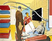 The P.S.1 show out in Long Island City, done in collaboration with the Museum of Modern Art, went off without a glitch, with an evenly spaced installation of works by 149 artists spread throughout the building. It's not nearly as edgy as one might have imagined, but the quality of work is consistently good. It looks like the curators' massive quantities of studio visits paid off. Standouts include Julian LaVerdiere's mixed-media installation First Attempted Trans-Atlantic Telegraph Cable Crossing (Memorial, Model) (2000), which features cinematic lighting and a brooding techno score by Wolfgang Voigt. An f/x expert who showed sculptures of sunken vessels at Andrew Kreps in December, LaVerdiere has devised a nine-foot-long clipper ship in a casket-sized vitrine, displayed on a mausoleum-like platform with gauzy black curtains. Paul Pfeiffer's John 3:16 (2000) is a digital video loop of a basketball player in flight, focusing on movement of body and ball, complete with moody musical sound effects. The image is grainy and tweaked, and suggestive of a Gerhard Richter painting. Pfeiffer shows with the Project in Harlem, and is included in the Whitney Biennial 2000. Steven Brower's Steven Brower Action Prototype (1999) is a hilarious set of action figure self-portraits. Ricci Albenda's excellent Action at a Distance (2000), a sleek rhomboid room made out of fiberglass and drywall set in the low ceilinged rustic basement, is cool and cerebral. Olav Westphalen contributed the wry Smokestack (2000), a tower of Styrofoam bricks topped by an amusing pink styro cloud. Ernest Jolicoeur gave hope to abstract painting with the work New Fruit (1999), an acrylic and enamel on wood, canvas and Formica that challenges the conventions of the form. And everyone liked Do-Ho Suh's Seoul Home/L.A. Home (1999), a life-size sewn model of a room done in green silk and hanging from the rafters of the large third-floor gallery. If anything, "Greater New York" provides a look at the vast talent pool in NYC, a deep one indeed. The Unbearable Lightness of Being Wow Neo Wow -- Neo Rauch (that must translate as smokin') was born in 1960 in the former East Germany and his eight large canvases, on view at David Zwirner in his first U.S. show, have the undeniable feel of Socialist Realism. Bright propaganda colors and Khruschev-era fashions afflict these figurative paintings, which are like giant World's Fair postcards overcome by an Orwellian surrealism. Rauch's absurdist dramas of lugubrious proletarians -- Rauch alter egos? -- at work and at home, teaching and being taught, strike an inexorable, melancholic chord. The people may be as inanimate as plant life, but Rauch's show marks a major-league New York debut. Major, indeed -- as all the works are marked sold in a price range of $20,000 to $25,000. Personae The rascally pathos of Belgian painter Jan Van Imschoot is everywhere evident in the paintings and drawings in his current show at Bonakdar Jancou, which is titled "How to Sell Your Wife -- Confessions of a Painter." One picture is a copy of Velasquez' Las Meninas with a later, older version of the princess also added in. A work on paper shows a male and female nude, surrounded by impish personifications of the Zodiac. Van Imschoot implies a world of unconventionality and irony, with a punning sensibility not unlike that of Marcel Broodthaers' and a sense of humor akin to Martin Kippenberger's. Life is absurdly serious and van Imschoot knows when to take it for what it is and when to fuck with it. Rauch and Van Imschoot, along with the Iranian-born, Berlin-based painter Nader (who shows with Martin Klosterfeld), indicate that there is room in painting for subject matter that exists on a philosophical level, the triumvirate forming the nucleus of an influential group of emerging artists on the global scene. Photo form Chelsea dealer Andrew Kreps has let photographer Liz Deschenes loose in his gallery, where she has organized "Photography about Photography," a gem of a show featuring 13 artists reflecting on the medium itself. The esthetic ranges from the sharp-focus realism of Thomas Ruff to the sublime myopia of Uta Barth, from a concentric, golden sunburst by Adam Fuss to a royal blue monochrome by Donald Moffett. Hopefully the exhibition will travel. Attention collectors So you've made it to the big town and are living large in the height of nouveau riche decadence, Olympic Tower, with a fabulous view of Saint Patrick's Cathedral on Fifth Avenue. What to decorate the pied-a-terre with? Perhaps you'd be interested in the photographs of 25-year-old Daniela Rossell, a New York artist originally from Mexico City who is showing two series of works -- "Ricas y Famosas" and "Olympic Tower" -- at Greene Naftali. Rossell's subjects include the sexy stepdaughter of Mexico's notorious exiled president, Carlos Salinas, as well as a teen prostitute seated by a rooftop jacuzzi and a nubile high school girl in a tennis outfit. Weaving society portraiture, theater and Orientalism into a contemporary Baroque, the photographs are over-the-top depictions of people living in a real-life fantasy world. Rossell has smartly enticed them to pose in these preposterous environments, embracing the clashing décor -- ornate gilt-framed mirrors and chandeliers, colorful patterned rugs and velvet throws, religious icons and garish portrait paintings. A recurrent theme is not just the money, but the projections of women as powerful deities, the high priestess or Goddess. It's a bold move to show these works frameless and taped to the wall, as unapologetically resplendent as their inhabitants. New space Assorted Flavors is a group show at the newly opened Catherine Moore Fine Art, located at 140 West 30th Street. It features work by Charles Andresen, Amanda Church, Jenny Hankwitz and Andrew Chesler, all abstract painters. Chesler in particular makes a techno splash with his nod to Color Field painting. A devotee of Gary Stephan's sublime stain t