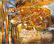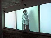 | Day for night All that glitters is gold, or rather silver sequins, in the new installation from cut-up couture artist E.V. Day. Lucky Day garnered spots in both the "Greater New York" survey at P.S.1 and the Whitney Biennial without ever having had a solo show in New York. At the Whitney, the 33-year-old artist deconstructed a white evening gown (like the one worn by Marilyn Monroe in Seven Year Itch) into bits and pieces strung out on scores of monofilament wires. The P.S.1 piece was more risqué, an exploding pink plastic sex doll in an orgasm of suspended fragments. For her solo debut at Henry Urbach Architecture over in the Chelsea Arts Building on West 26th Street, Day painted the interior of the small space midnight blue and installed Transporter, a silver sequin dress by 1980s hotshot designer Stephen Sprouse. The piece looks like a spangled jack-in-the-beanstalk, shooting north and south ad-infinitum by way of two circular mirrors bottom and top. Along the walls hang clusters of surgical wires arranged in pelvis shapes and coated with globules of clear resin. They look like butterflies casting celestial shadows onto the dark walls. The installation is theatrical -- it's got Marlene Dietrich written all over it. The nocturnal setting alludes to Hollywood glamour, film premieres and parties. E-off! They wear sporty orange jackets and look like a racing team, but etoy is not a Formula 1 outfit. Rather, etoy is a Swiss-based collaborative of artists who shot to fame for defeating the publicly traded on-line retail giant eToys in a trademark infringement lawsuit (for more info, check out www.etoy.com and www.toywar.com). For a ten-day run, Postmasters on West 19th Street is presenting "Impact Management: etoy Corporation in Manhattan." Parked outside on the street is a 40-foot-long orange truck trailer painted with the etoy logo. Inside the gallery is a big orange tent topped with barb wire and holding a web station where one can navigate through the "Toywar." Hanging on the gallery walls are slick photoprocess works, marked with modern graphics and digital illustrations, that represent "shares" in the etoy company, complete with names, dates and serial numbers. Etoy claims to sell "cultural value" -- a sound financial investment, in the words of etoy curator Suzy Meszoly. And though etoy members call themselves cultural terrorists and business hackers, they're not above making a buck. The individual and corporate shares are priced at $3,000 and $5,000, respectively. (EToys recently announced fourth-quarter losses of $48.4 million. Etoy is doing rather better -- all 60 on view in the gallery are marked "sold," though new ones representing the "toy war" are available.) Ironically, the eToys lawsuit brought the art group a huge international audience, not to mention a David vs. Goliath status. Now, etoy says it is letting shareholders vote on whether to sell its domain name to the Santa Monica-based online toy retailer. In the end the group's high moral ground won't interfere with profit, making its contradictory brand of commerce more artifice than art. Ready for Wearing What friends Gillian Wearing has. Her 23-minute-long, black-and-white video installation at Gorney Bravin + Lee, appropriately titled "Drunk," shows a bunch of drunken no-goods in search of an endless flow of free suds. The artist coaxed this gang of louts into her studio, documenting their debauchery in exchange for liquid sustenance. Wearing's video stars desperately need a shave and a bath, not to mention a sense of direction. Where you might expect rambling pub conversations, you get instead a plain white existential setting. The lack of ambiance and furnishings reduces these pathetic bastards to caricatures of themselves. A real-time narrative seems to unfold -- this could have been a day in the life, yet it was filmed over several years, men and women coming and going, their chronic drinking deteriorating to stupor and worse. One guy leans on the paper backdrop pissing on the wall, another one is splayed out across the floor, a dead ringer for Keith Richards. Some soused hag nods off -- it's funny as hell. A few guys tussle, on the verge of fisticuffs. Two men hug and hold each other up as one mumbles words of comfort. "It's okay." Looking like a Gap ad gone awry, these anti-demographic denim-wearers seem subtly cognizant of the camera watching every move, perhaps even embellishing a bit as they throw caution to the wind. Wearing's Situationist scenario has been well edited, its pace and elliptic arc hums, and the matter-of-fact material is ageless. Hurly-burly The painter Steve DiBenedetto spent three months on the estate of Claude Monet in Giverny, France. The influence of Monet is apparent in the small paintings now on view at Baumgartner Gallery on West 15th Street in Chelsea. DiBenedetto sees the world in fractious shards of myopic light and color, his small canvases wrought with an arsenal of stimuli. The combustible blurred realism he willfully composes out of an impressive impasto is complex and regulated into a semblance of place. Up close its chaos and congelation, 25 feet away it's a hurly-burly of globes, Ferris wheels, tentacles and splotches of undersea flora. The gem in this series is Celtic Frost (1999), an 11 by 14 foot horizontal of ectoplasmic greens. Its many shades run from emerald to evergreen and the gritty brushwork ranges from unruly to sublime. DiBenedetto has an Impressionist's heart and an Abstract Expressionist hand, numbingly morphing the two into a potent cogency. The only fault in the show is the dim lighting, which relegates the marvelous fireworks of color to the shadows. "That's how all the shows are lit," sniffed the gallery girl. Well, the lighting is quite dreary, deary, and in a word -- sucks! Mapplethorpe's modesty Between 1972 and '74, the young photographer Robert Mapplethorpe (he was born in 1946) produced experimental "auto-portrait" Polaroids that were precursors to 