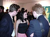 | Inka's inhibitions Some get it sooner, others later. In the case of painter Inka Essenhigh, it's been sooner. In keeping with the impact of high-profile careers flush with newfound fame and $uce$$, Inka has had recent shows at Victoria Miro in London and at the Albright-Knox Art Gallery in upstate N.Y. Now, the fashionably young artist is having her third New York solo show in as many years at Mary Boone on Fifth Avenue. At Boone, Essenhigh has five canvases red dotted and dated from 1999/2000 at $25,000 each. Painted with thick glossy enamel in two tones and monochromes, her finely honed quasi-figures float across an infinite expanse of color field. Nameless and faceless bodices without limbs, they're like armies of castrated corsets bursting at the seams searching for a resting-place. The narratives show sexless mountain climbers, parachutists, construction workers and hang-gliders, floating backpacks and saddles, phallic husks of corn, traffic cones and motorcyclists, mechanistic armatures, see-through sheeting and fencing gear. Her paintings are interchangeable ensembles of humanoids at work or motionless in far-flung environs -- hot pink, peach, turquoise, earthy beige tones, and blood red. It's hard to pin down the works and easy to be seduced by their glassine surfaces. From this point on, the burden falls on Essenhigh to push the envelope further by taking the road less traveled, destroy the image of her Kabuki Surrealist antecedents and remake herself in the image her talent takes her.