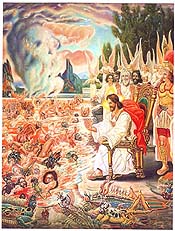 The Damned Are Cast into the Lake of Fire and Brimstone (1968) is crammed with figures in chalky whites la El Greco and colors fresh from the tube, far distant from Long's initial artistic works. Other Old Masters, like Drer and Caravaggio, too, have influenced Long, yet he comes up with something unique, often inserting contemporary figures into his work. The features that make his later paintings stand out are the white/bright color contrasts, crowded yet well-defined compositions, lots of local North Carolina color in some backgrounds, and the wildly imaginative sea creatures and demons.