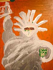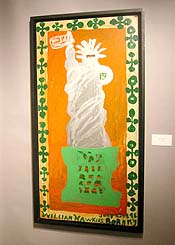 At the Outsider Art Fair, the Ricco/Maresca Gallery had some impressive William Hawkins paintings. One, a Statue of Liberty, was pushed into another dimension by a collaged magazine snippet of a woman's eyes.