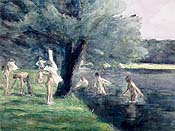During the last decade, Rockburne has lived in Italy, beginning as an artist-in-residence at the American Academy in Rome in 1991. There she became enamored with the skies and their depiction in Renaissance art. In Open Sesame: Sky Chart (1991-1999), she combines photographs of an 18th-century frescoed room that charted the supposed elliptical orbits of planets around the sun with her drawings in colored pencil on handmade paper. A panel of a Piero Della Francesca polyptych inspired her Piero's Sky (1991-4) ($17,500) with its rich tones and stuttering light in Aquacryl and colored pencil. Rockburne's own astronomical investigations led her to muse about how her multiple universes might look. As a result of her own observations of the night sky, for instance, she put a sun in her interpretation of the constellation Pegasus (1993-5) ($48,000), a dynamic work on gessoed panel. A star was later confirmed in that constellation, exactly as she had predicted. In the '90s, Rockburne took on no less than seven fresco projects dealing with the cosmos. Her Northern Sky and Southern Sky (1992) in Sony's Madison Avenue headquarters in New York are marked by pulsating hot colors, predominantly red-pinks and yellow, with thin looping trajectories in primary colors. This 30-foot square fresco secco duo, well worth a visit, can be glimpsed from a short distance by visiting the Sony building and taking an elevator to, of course, the Sky Lobby. Dorothea Rockburne, "Ten Years of Astronomy Drawings, 1990-2000," Mar. 1-Apr. 1, at Lawrence Rubin Greenberg Van Doren Fine Art, 730 Fifth Ave., New York, N.Y. 10019. Primarily done in black, gray and off-white, the surfaces of these pieces are exciting and lush, whether crinkled, creased, punctured or layered. One example of their deep, luxurious finish is Undulating/Nature Forms ($7,000), a work that shimmers and leaves your eyes dancing. Hand-crafted by folding, frottage, cutting and collage, these lively drawings have been made mostly with traditional media like graphite, acrylic, pastel and paper collage -- yet they are radiantly fresh. The tearing and delicate cutting of various layers, some with iridescent paper underneath, is reminiscent of folk-art cut-papers, while Seborovski's use of applied pieces call to mind textile appliques and 20th-century collage. The use of neutrals and varied textures also brings to mind Art Deco works, and her Oscillating Circles and Holes ($7,500) seems Klimt-like in its patterning. Still, Seborovski has turned out stunning works that are uniquely hers. Carole Seborovski, Feb. 24- Apr. 1, at Mitchell-Innes & Nash, 1018 Madison Avenue, New York, N.Y. 10021. Alan Turner, Mar. 10-Apr. 8, at Lennon, Weinburg, 560 Broadway, #308, New York, N.Y. 10012. The most interesting works in the show are interiors that include Castle's make-believe "friends," whose portraits he displayed in his room. Others allow us see familiar objects in new ways, like his Untitled (Doorknobs). Even more interesting than the drawings are the sewn paper constructions. Castle also made fascinating small books of his drawings, although none have been included in this exhibition. This is a modest sampling of Castle's works; some here seem more remarkable because of the artist's background than because of their inherent esthetic qualities. It is, however, an exhibition that will leave newcomers to James Castle's drawings craving to see more. James Castle, "House Drawings," Mar. 4-May 4, at the Drawing Center, 35 Wooster, New York, N.Y. 10013. Far more imaginative is the sprawling multipartite drawing Bikini Island Diary ($18,000). Descarfino takes a mental trip to a contaminated atoll and dreams up mayhem and disaster on the beach. The set-up allows him to throw in whatever strikes his fancy. The result -- small drawings in a range of palettes of objects, people, landscapes and scenes. His riffs on the theme of masks, for example, include a surgeon, a firefighter and bandit, all in appropriate facial coverings. Some still-lives, like a pair of swim goggles, are playfully cutout and attached to the wall, like repeating leitmotifs amid the rectangular sheets. It's a bravura performance that's a lot more fun than being there. John Descarfino, "Recent Paintings and Works on Paper," Feb. 24-Apr. 8, at Lucas Schoormans, 508 West 26th St., #11B, New York, N.Y. 10001. The oils ($28,000-$35,000) and watercolor and gouache pieces ($9,000-$15,000) in this show are wrapped in veils of color that make them partially present and partially absent. Within a single work, Phelan manages to suggest the passage of time, the constant change that inevitably dooms the fragile beauty of her subjects. Ellen Phelan, Feb. 18-Apr. 1, at Senior & Shopmaker, 21 East 26th Street, New York, N.Y. 10010. Perhaps it's because of his early training as a sculptor that his compositions, with their areas of black and white with occasional bright patches of red or other colors, always seem extremely weighty. Even when using only charcoal and ink, Vincente looks like he is employing collage. Areas of black or color assert themselves and seem anchored forever. Prices top out at $42,500 for a large collage. "Vintage Vicente," Mar. 9-Apr. 15, at Berry-Hill, 11 East 70th St., New York, N.Y. 10021. Lamb was born in Australia, but brought up in Manchester where he studied medicine and became a doctor. He then studied art. Reticent to show his work, he was better known for the company he kept. Nothing new to the Bloomsbury set. He was involved with the Dorelia (Dorothy McNeill, who lived with Augustus John), who appears in several of these works. That is, until he was married to Lady Pansy Pekenham in 1907, who also appears with and without their three children in these drawings. He is best remembered for an oil portrait of Lytton Strachey on loan to London's National Portrait Gallery. Lamb is an excellent portraitist and very sympathetic in his depiction of children. In one pencil drawing of the pubescent Viv