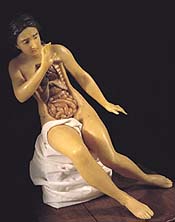 Body of evidence The show includes strangely wooden-looking, 17th-century Dutch group portraits of doctors at anatomy lessons (alongside a more riveting example by Rembrandt). It has rows of opened body parts created in wax. There are skeletons, skeletal illustrations, illustrations of facial expressions and expressively designed operating instruments. One room is dedicated to depictions of pregnant women, complete with open wombs containing removable parts. On view here are the bizarre endeavors of one Dr. Frederik Ruysch, who in the 1600s perfected the process of preserving body parts in display jars, and did just that with a few fetuses, some of which have been adorned with beads. Interestingly, Ruysch fancied himself a bit of an artist and displayed his "cabinet of curiosities" in his house museum. Move over, Damien Hirst! The historical objects are complemented by contemporary works meant solely for artistic consumption -- Beth B, Tony Oursler, Marc Quinn, Bill Viola. Their juxtaposition with the older displays emphasizes the new signification of corporeal knowledge in our age -- a dull feeling of horror hidden within the fascinating, limitless reach of science.