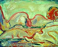 Fauvism at the Musée de l'art moderne de la ville de Paris The current must-see Paris show is "Fauvism, Trial by Fire" at the Musée de l'art moderne de la ville de Paris, a retrospective devoted to the first truly modern art movement (Oct. 29 1999-Feb. 27, 2000). The show traces the development of Fauvism from Neo-Impressionism (particularly the Pointillism of Paul Signac and Georges Seurat) and Symbolism (Gauguin, van Gogh, Redon) through Bonnard's candy-colors, and trips to the Mediterranean by Matisse and Signac. Fauvism quickly captivated artists from England to Russia, and became a big sensation at the 1905 Salon d'Automne in Paris, when critic Louis Vauxcelles decried works by Matisse, André Derain and Maurice Vlaminck as a "wild beast" style. The Fauves reinvigorated painting for the new century by giving it vivid, pure colors and a childlike touch. Matisse favored adjacent compliments: green and red over orange and purple. Vlaminck used blue for black. Their brushstrokes looked more like finger smears and crude daubs, and their subjects were simple and direct -- landscapes, portraits, still lifes -- as was the case with Impressionism and later with Cubism (by contrast, Symbolism took up recondite subjects). Critics, the public and many artists hated it. The show in Paris begins with Matisse's 1904 Pointillistic Luxe, Calme et Volupté and ends with his Le Luxe II (1907-08), which depicts three bathers with simple planes and few colors -- grass, sky, flesh and sand. In between are all the known and many of the forgotten Fauves smearing paint across the continent in an evolution that moved from points, to smears, to planes of color. In 1905 the first Fauves were joined by Kees van Dongen, Othon Friesz, Georges Braque and Raoul Dufy. Others who adopted a Fauvist style include Alexej Jawlensky, Edvard Munch, Giacometti, Mondrian, Karl Schmidt-Rottluff, Emile Nolde, Kandinsky and Kupka. Clearly, Fauvism was the root of many art movements that followed. The exhibition makes apparent both the movement's international scope and its broad similarities of style and subject matter. Yet exceptions stand out, such as Piet Mondrian's pale mauve and yellow Paysage de mer (1909-10), which previews his interest in abstraction, and Edvard Munch's wild, whirly eyed bohemian in La Vigne vierge rouge (1898-1900), descending from a blood red house toward center stage, and prefiguring his legendary Scream. The few Picassos in the show also looked comparatively sedate, and one 1910 Boccioni is a set up for Futurism. The essentially painterly Fauvist movement ultimately died with the advent of Cubism, Futurism and Dada, which would change the rules of art-making irrevocably. Still, Fauvism was the impetus for the century's recurring expressionist painters, all the way up to the "wild" style painters that appeared in Europe in the 1980s, particularly in Vienna and Berlin. "The Other Slumber" One flight up from the heat of the Fauves at the Musée de l'art moderne de la ville de Paris, "The Other Slumber" is a dreamy, David Lynchian blend of installations, videotapes and photographs, playing on men and women afloat, adrift, and doing what they do: struggling with love (Oct. 29, 1999-Feb. 27, 2000). Included is a large color photograph by Anika von Hausswolff, called Hey Buster! What Do You Know About Desire?, that shows a German shepherd on a beach with a female cadaver. The mood is further set by Anna Gaskell's video, set in a dark room, of a girl in a pool coming up for air; and Koo Jeong-a's photographs of snow falling in a dark alley, the flash of the camera reflecting off large snowflakes. The best for me was Swiss artist Ugo Rondinone's cool and dreamy installation. In the corners are four video monitors (showing various images, including a car in the snow, a girl in front of a crumpled backdrop and a man in bubbling water) and in the center of the space are three suspended plastic pods with speakers set in them playing what sounds like songs by lover-boy Chris Isaak. The walls are painted lemon yellow up about two feet from the floor, and the color then fades into iceberg white. Roni Horn, "Events of Relation" Across the hall at the museum, New York artist Roni Horn's "Events of Relation" (Oct. 29, 1999-Feb. 27, 2000) includes photographs and two large, blue-glass ottoman-sized forms called Untitled (Flannery) (1996-97), which made me think of Flannery O'Connor's dark southern Catholicism set in medicine-bottle glass. Horn's early floor pieces often have 3-D words set in shiny Minimalist metal beams. Here a photographic series, "Still Water (The River Thames for example)"(1997-99), shows water from overhead and has captions like "A Rat Surrendered here," "See poem No. 1340 by Emily Dickinson, 1870" or "Going into the water is going into yourself." Ellipsis (II) (1996) is a grid of 64 photographs of door numbers in white-tiled bathhouse in Reykjavik. Dead Owl (1997) is a pair of photos of the same white stuffed owl. And Pi (1994-99) is an installation of 45 black-and-white and color photographs of people, water, animals, feathers, barren landscapes, a sanded floor with a mound of wood dust in a corner and paneled walls painted robin's egg blue. Horn's work is a catalogue of other places and atmospheres. She turns remoteness into a pensive calmness full of cool air and northern reticence -- everything that Fauvism is not. Vik Muñiz at the Centre National de la Photographie and Galerie Xippas Brazilian artist Vik Muñiz uses a variety of exotic mediums to make drawn and painted images that he then rephotographs -- a method that is both poetic and clever. He makes drawings in wire of teddy bears or a chair; he uses black string to redo famous landscapes by Constable or Gerhard Richter to look like high-contrast aquatints; he draws a Hans Namuth photograph of Jackson Pollock in tangy marmalade; a portrait series called "Pictures of Chocolate" includes Marilyn Monroe and a Rorschach blob drawn in choc