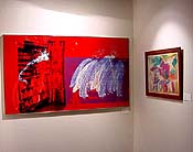 One especially interesting technique is to present African art and contemporary art side by side. Gallery Camino Real from Boca Raton is showing a female figure from the Kolango people from the Ivory Coast ($3,200) along with Richard Pousette-Dart's Presence Circle with Circle ($90,000). Is there much demand for African art in Boca? "Actually," said gallery director William Biety, "that's what we sell most consistently." Leonard Hutton Galleries juxtaposed a striking Emil Nolde picture of a wild-eyed woman with a weathered, dark Bateba female figure and a Wilso anthropomorphic vessel designed to contain ancestral spirits.