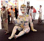 One popular way to install an art fair booth is by placing a large-scale, crowd-pleasing work at the entrance to catch the eye of passersby. Dealer Nancy Hoffman went with a work by Viola Frey, whose wildly painted ceramic women give new meaning to the notion of "Giantess Zone." In the middle of the gallery's art-fair booth is a huge sculpture of a nude woman, sitting on the floor and holding the globe of the world in her hand. "Women rock," said Hoffman's Chris Watson. What an understatement. The sculpture is $60,000.
