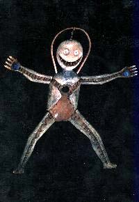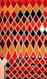 Teresa Lanceta at the Reina Sofia This absorbing show is divided into three distinct areas, one of which displays Moroccan floor coverings and cloths mounted in the floor beneath glass panels. A large portion of the Moroccan tapestries come from the collection of Bert Flint, who was present for the opening and played a significant role in the show's organization. The exhibition, on view here through May 3, 2000, was curated by Marie-France Vivier of Paris's Musée des Arts d'Afrique et d'Océanie. Also at the Reina Sofía in Espacio Uno: An installation by Ana Laura Aláez called Dance & Disco. This could be interesting -- "an esthetically balanced disco space, where exhibition-goers can dance, have a drink or a good time."