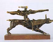 In the Japanese area, nothing can match the glory, elegance and leisurely installation of the Mary Griggs Burke collection at the Metropolitan Museum, which is on view through June 25. The treasures span the most exciting art periods in Japanese history, beginning with the prehistoric era and moving right up to the Edo Period (1615-1868), when the imperial court relocated to Edo (the ancient name for Tokyo) from Kyoto. The Burke collection is especially rich in art from the two great "luxury" eras: the Muramachi Period (1392-1573), with its vast number of paintings and screens; and the blindingly brilliant but short-lived Momoyama period (1573-1615), with its incredible number of lacquered boxes and stoneware dishes. When the Met has permanently added the major Burke collection treasures to its holdings, it will have achieved the preeminent position among U.S. museums in Japanese art. Japanese treasures from San Francisco Another important show of Japanese art is: "For the New Century: Japanese Treasures from the Asian Art Museum of San Francisco," on view at the Japan Society, 333 East 47 Street, Mar. 22-July 9. 47 masterworks spanning 3,000 years were selected for this exhibition, which takes place while the San Francisco Museum is closed for a move from Golden Gate Park to its new home in the Central Building of the San Francisco Public Library. A four-foot-high Haniwa greets the visitor to the show's first gallery. Haniwas are cylindrically shaped earthenware figures from pre-Buddhist Japan, before 500 AD. Powerful leaders at that time were buried in huge funeral mounds and Haniwas, typically warrior figures but made in female versions as well, marked the boundaries of sacred sites. This Haniwa has a characteristic touch of gaiety about it and excudes great charm. The compassionate Bodhisattva Shokannon, a majestic carved and lacquered wood statue standing on a lotus base, dates to the 12th century, Japan's Heian period. The figure emits an aura of absolute tranquility that is reinforced by a shawl and scarf draped over his shoulder. The celebrated Edo painter Ogata Korin (1658-1716) came from a well-to-do family and mingled freely with Kyoto's royalty and aristocrats. For many years he enjoyed a life of leisure but eventually was forced to go to work for a living. Enamored of both portraiture and landscape, he often mingled the two. In a happy scroll we see Chou Moushu at a pond's edge, leaning on an armrest and admiring floating lotus blossoms. Horizontal lines suggest the still waters, broad washes proclaim land. A two-panel screen by Fukae Rohu (1699-1752), The Path by Mount Utsu, illustrates a scene from one of Japan's favorite folktales, The Tale of Ise. It shows a courtier on an autumn mountainside who encounters a Buddhist monk and asks him to carry a letter back to Kyoto. Among the other San Francisco offerings are a lacquered wood reading stand with mother-of-pearl inlays, a pair of six panel screens titled Pine, Bamboo and Plum, Three Friends of Winter and an array of hanging scrolls, stone and lacquerware. The Mongolian horse in Islamic art The Metropolitan Museum picked the Mongolian horse as its vehicle for celebrating New York's "Festival of Mongolia," which is sponsored by the Mongolian embassy and ends soon, on June 19. Not to worry, the Met's exhibition, "Riding across Central Asia: Images of the Mongolian Horse in Islamic Art," is up through Sept. 24. A small and inelegant creature, yet untiring and resourceful, the Mongolian horse left its imprint on both Eastern and Western worlds. It was this horse, after all, that enabled the Mongols -- only 2.5 million strong -- to exert an outsized influence in art, culture and warfare. Later this horse brought the Turks, descendents of Mongol warriors, to the gates of Vienna and the French at Poitiers. The Mongols were nomads following their cattle, camels and sheep across Eastern and Central Asia for centuries. Genghis Khan (1167?-1227) unified these tribes into the "Golden Horde," terrifying the inhabitants of Turkestan, China, Siam and India. The Tartars and their ruler Tamerlane (yes, the one in Christopher Marlowe's play) were also descended from the Mongols. One of their number, Babur, founded the Mugal empire of India. The Mongols left their mark on the arts, architecture and ceramics of Persia. The tiles of Kashan and the pottery of Tabriz also offer impresssive testimony to Mongol creative skills. They greatly influenced the Chinese throughout the Yuan dynasty (1260-1368) which they set up under Kubla Khan, (yes, the one from Coleridge's "pleasure dome") a direct descendent of Genghis Khan. Some 25 objects in all -- metal, works on paper, ceramics and paintings -- demonstrate the many areas of Mongol influence during the 12th to 14th centuries. Two "well worn" (to put it mildly) saddles dating to this period leave the most profound imprint on the viewer, speculating what they must have seen, how many battles they might have survived. The lyre and the bull On Jan. 4, 1928, the archeologist Leonard Woolley sent this telegram (in Latin to discourage interception) to the University of Pennsylvania's archaeology museum. "I found the intact tomb of Queen Puabi adorned with a dress in which gems, flower crowns and animal figures are woven. Tomb magnificent with jewels and golden cups." He had found the burying place of ancient Sumer's most influential woman. Between 1922 and 1934, Woolley would discover and excavate the Royal tombs and their ancillaries containing the remains of some 2,000 people. Now this cache of more than 250 objects from the third millennium B.C., celebrating the civilization of Ur of the Caldees, is on display at the Morgan Library on East 36th Street, May 24-Sept. 10. The Sumerian city of Ur was located on the Euphrates River in what is now southern Iraq. The region, which we know as the "fertile crescent," was an alluvial plain, without stones or other building materials. Its ziggurats (fortified st