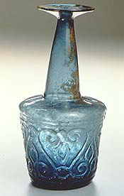 The Romans were the first to develop the technique of glass- blowing in the first century B.C., and these delicately colored objects quickly became a trade object that traveled around the globe.