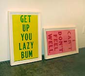 For fans of prints and multiples, Andrew Kreps Gallery unrolled artist Cary Leibowitz's "Self-Importance Show," which included a pair of posters reading "Get Up You Lazy Bum" and "I Can't I Don't Feel Well." Clearly, we're talking here about the art with real-life resonance. The posters measure 24 x ca. 17 in., and are a bargain at $250 each, in an edition of 150.