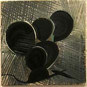 Deitch's vast Wooster Street space also featured a ten-foot-high pyramid of working TVs, an even larger heap of junked, graffiti-covered vans, and walls papered with floor-to-ceiling paintings (most depicting McGee's signature 3D cube pattern and his hang-dog cartoon characters). The labor-intensive agglomeration of funky stuff, originally made for museum shows in Brandeis and Melbourne, has the kind of youthful energy that was so painfully absent in Venice.