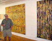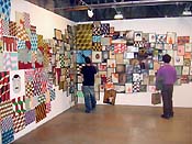 Dalglish likes dramatic brushstrokes and striking color combinations, and his paintings can suggest sunlight in the jungle or the golden Buddha. Among the larger works at Match were Temple Morphoglyph (2002), which measures 96 x 104 in. and includes 52 equal panels ("one for each week of the year," he said) and Levitating Morphoglyph, which is 96 x 96 in. and made of 12 panels, each 96 x 8 in. ("it can morph into 144 squares").