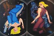 The Proposition on West 20th Street has installed a summer show with the light-hearted title of "Above the Trendy, the Down and Out." One standout is the pair of paintings of femme superheroes, The Girls in Space (2005), by Yale grad Megan Burns, which was bought by Proposition proprietors Ron Sosinski and Ellen Donahue ($6,000 each, though they get the dealer discount). Perhaps the dynamic duo will exhibit her work in their new gallery in Las Vegas.
