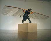 Star of the show at Feldman was Brazil, a 750-pound bronze sculpture of a man wearing gossamer plastic and wood wings spanning 20 feet and including a tiny tail motor with propeller -- inspired by a scene in Terry Gilliam's 1985 film of the same name. Panamarenko's Brazil is $400,000 (in an edition of six); a smaller model, made in an edition of 30, is $22,500.