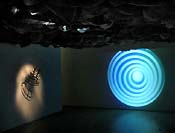 The gallery was dark and theatrically spotlighted, and felt a little bit like a graveyard -- indeed, Sturtevant presents herself as something of an esthetic "reanimator," breathing new, more intense life into icons of contemporaneity by making them again, from memory.