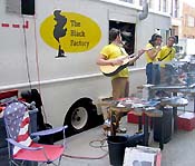 As a bonus, one Saturday earlier in June, the Maine-based artist William Pope.L brought his touring medicine show, The Black Factory, to West 26th Street in Chelsea. Pope.L's latest project was presented via a white van towing an inflatable caravan stuffed with a claustrophobic, autobiographical art installation, all parked at the curb in front of White Cube gallery, and also featuring a pile of flour on the sidewalk and animated sidewalk performances by a trio of white students.